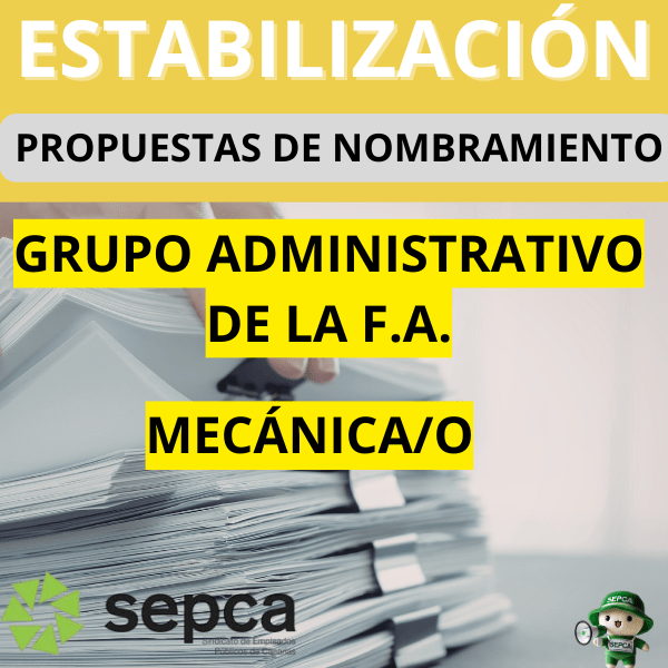 Estabilización.- Propuestas de nombramiento Grupo Administrativo de la F.A. y Mecánica/o