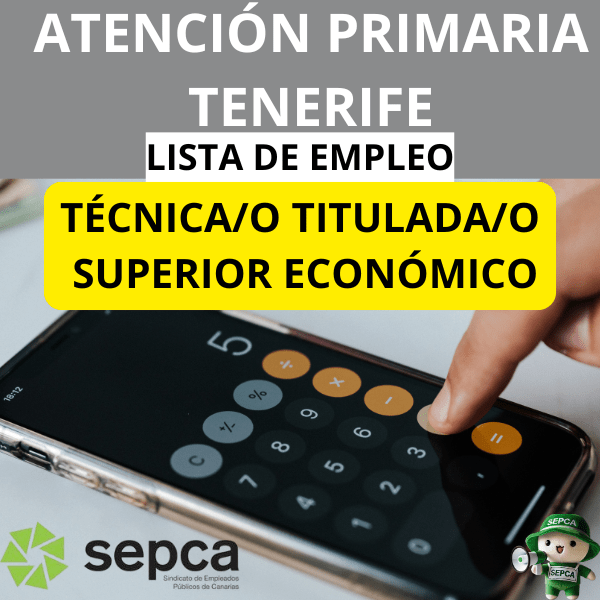 Atención Primaria Área de Salud de Tenerife.- Lista de empleo Técnica/o Titulada/o Superior Económico