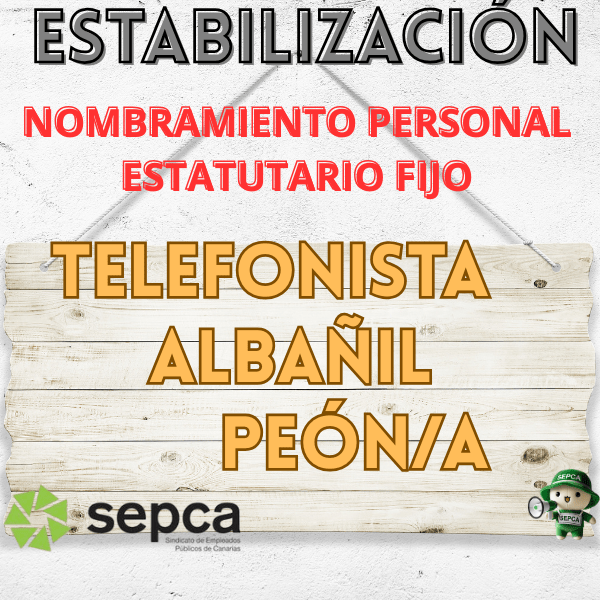 Estabilización.- Nombramiento personal estatutario fijo Telefonista, Albañil y Peón/a