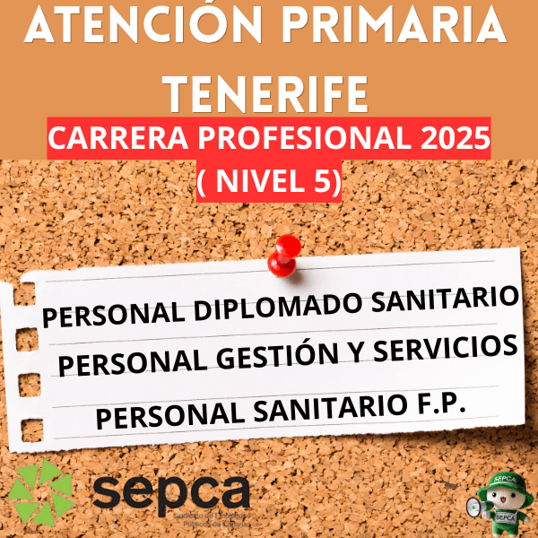 Atención Primaria Área de Salud de Tenerife.- Carrera profesional 2025 (nivel 5) Personal de gestión y servicios, Personal sanitario de F.P. y Personal diplomado sanitario. Resolución trámite de audiencia