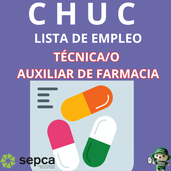 Resolución de la D.G. del CHUC, por la que se aprueba la relación provisional de aspirantes admitidas y excluidas en el marco de convocatoria para la constitución de Lista de Empleo Supletoria – Técnica/o Auxiliar de Farmacia.