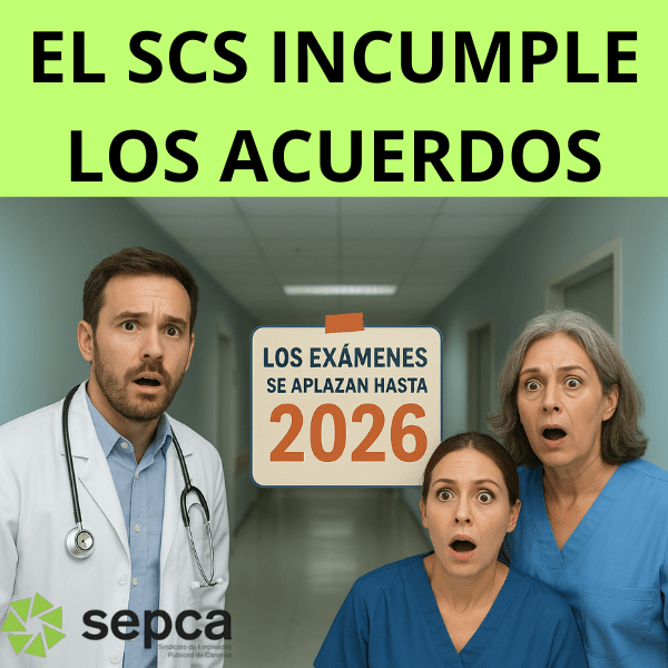 El SCS continúa incumpliendo los acuerdos a los que se llegaron en la negociación. Ahora comunican el aplazamiento de los exámenes para 2026, de la mayoría de las categorías. Según lo acordado, tenían que celebrarse “ANTES” que los ya realizados.