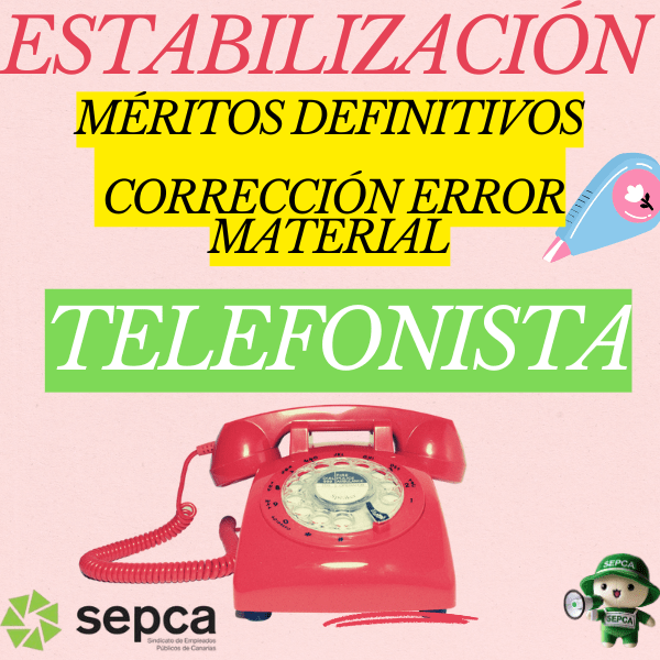 Resolución por la que se corrige error material detectado en la Resolución que aprueba los resultados definitivos de la fase de concurso de la categoría de Telefonista.