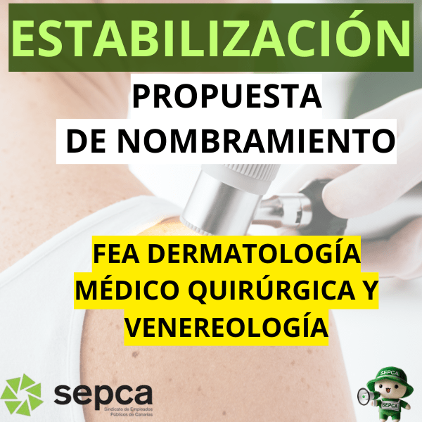 Resolución de la Dirección General de Recursos Humanos del Servicio Canario de la Salud, por la que se resuelve, elevar a la Dirección del Servicio Canario de la Salud la propuesta de nombramiento de las plazas básicas vacantes de la categoría/especialidad de, FEA – Dermatología Médico Quirurgica y Venereología Grupo A/A1 sanitario, del proceso selectivo excepcional de estabilización del empleo temporal de larga duración (concurso de méritos) (boc núm. 255, de 29 de diciembre de 2022).