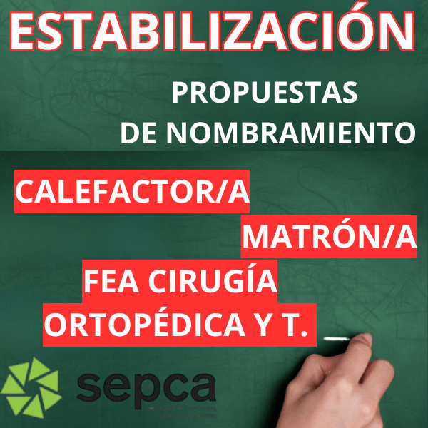 Estabilización.- Propuestas de nombramiento Calefactor/a, Matrón/a y FEA Cirugía Ortopédica y Traumatología