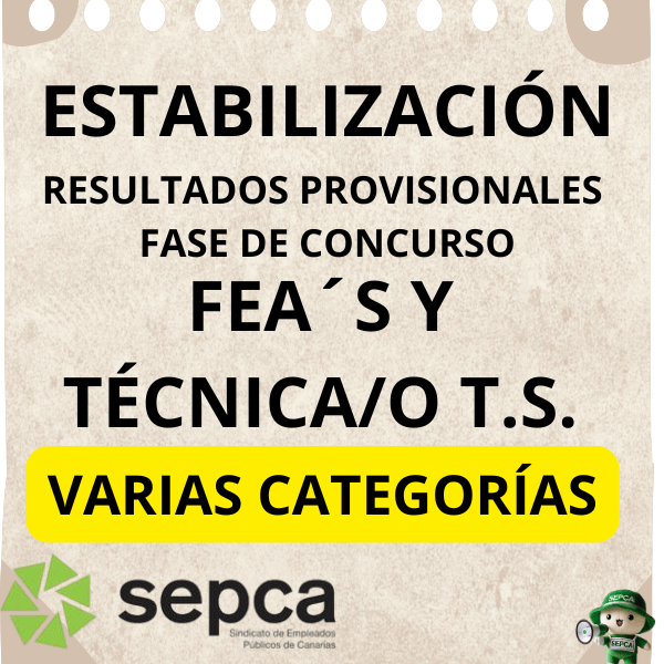 Estabilización.- Resultados provisionales fase de concurso. Varias categorías de FEA´s y de Técnica/o Titulada/o Superior