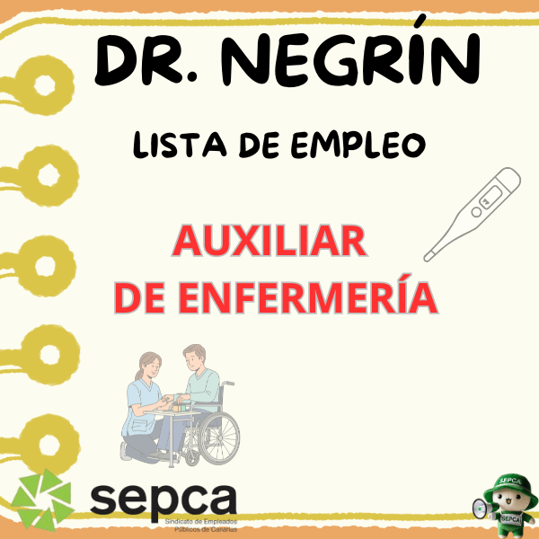 Resolución D.G. del Hospital Universitario de Gran Canaria Dr. Negrín, por la que se aprueba Lista de Empleo en el marco de convocatoria la constitución de Lista de Empleo Supletoria – Auxiliar de Enfermería.